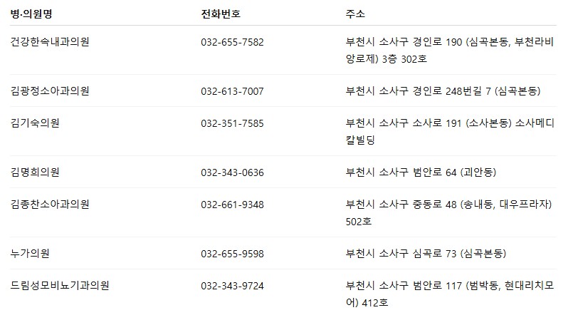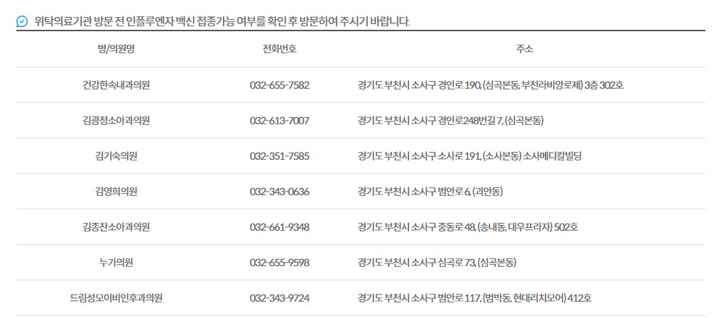 예방접종은 부천시 지정 위탁의료기관에서 진행됩니다.