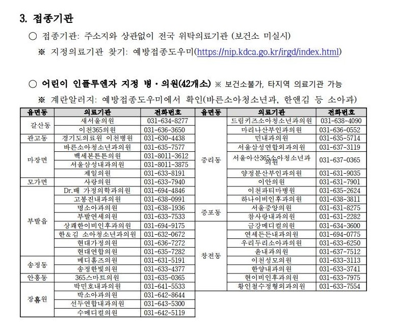 - 지자체 예방접종 문의: ☎ 031-644-4004