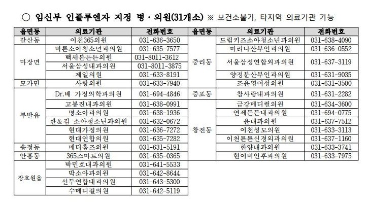 - 인플루엔자 예방접종 문의: ☎ 031-6190-7272