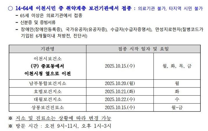 취약계층 접종 안내 (14~64세 이천시민 중 해당자)