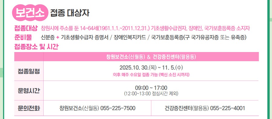 문의: 창원보건소 예방접종실 ☎ 055-225-7500