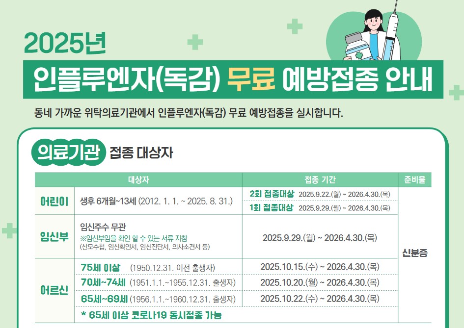 - 접종 기간: 2025.9.29.(월) ~ 2026.4.30.(목)