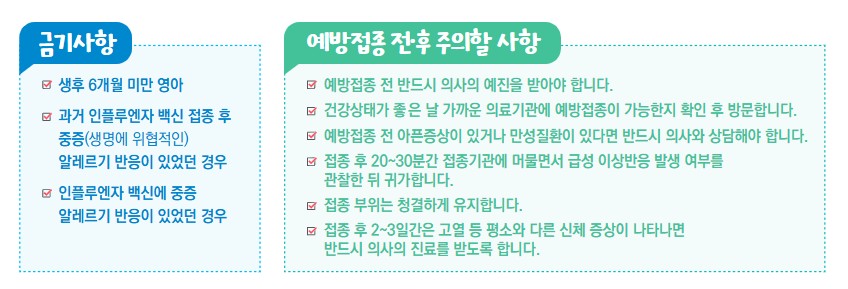 - 예방접종 당일에는 과로, 음주, 심한 운동을 피하세요.