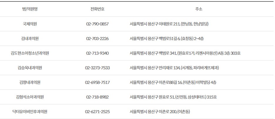 용산구는 동별로 지정 의료기관이 매우 많아 접근성이 좋습니다.