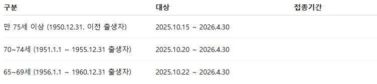 - 접종기간: 2025.10.15 ~ 2026.4.30