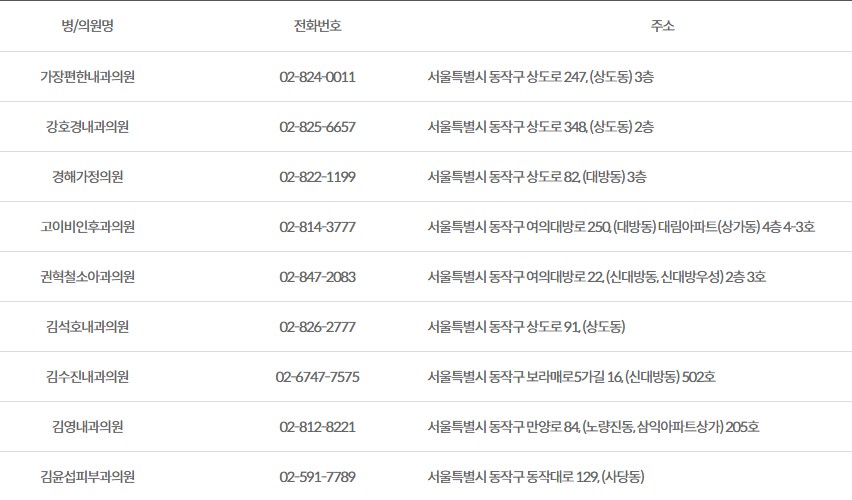 필요하시면 이 글 맨 아래에 동작구 전 병원 리스트 표 형태로도 정리해 드릴게요.