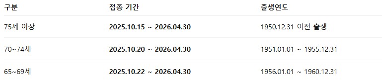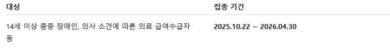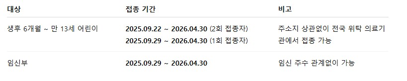 - 가능한 초기 접종을 추천 (백신 소진 시 조기 종료 가능)