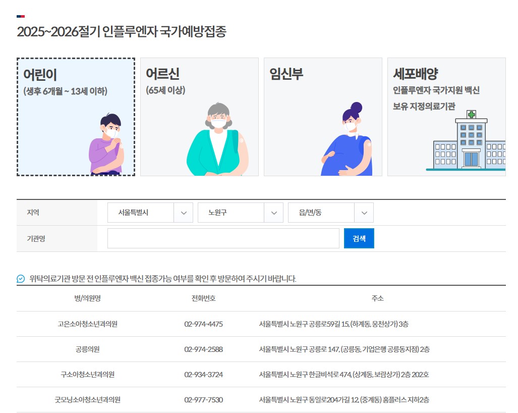 노원구 보건소는 어린이·임신부 접종 미실시 → 반드시 위탁 의료기관 방문