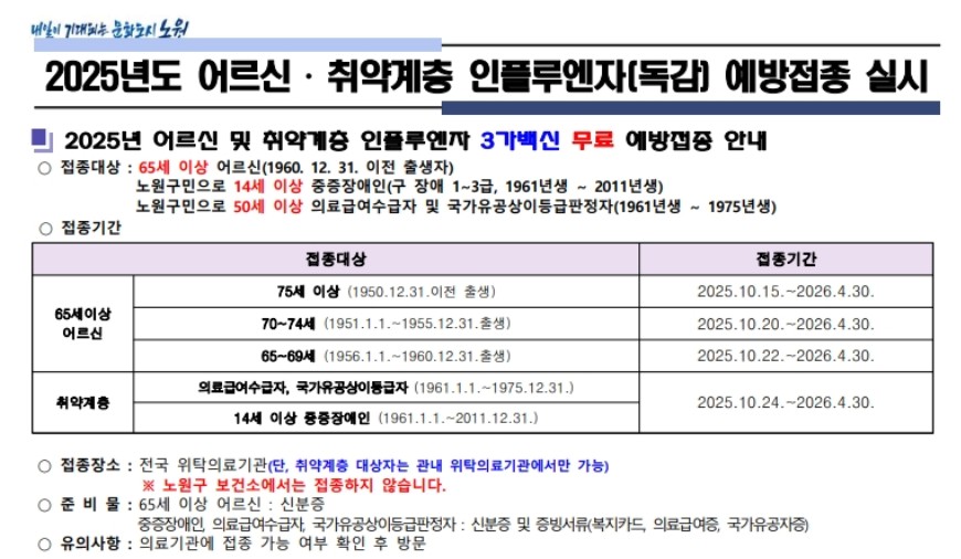 #노원구독감 #노원구예방접종 #2025독감예방접종 #무료독감 #임신부독감접종 #어린이독감접종 #노원구보건소 #인플루엔자무료 #서울예방접종 #겨울철건강 #감기예방 #예방접종도우미