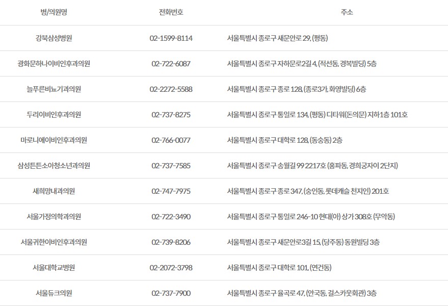 종로구 전역에 49개 지정 병·의원이 운영됩니다.