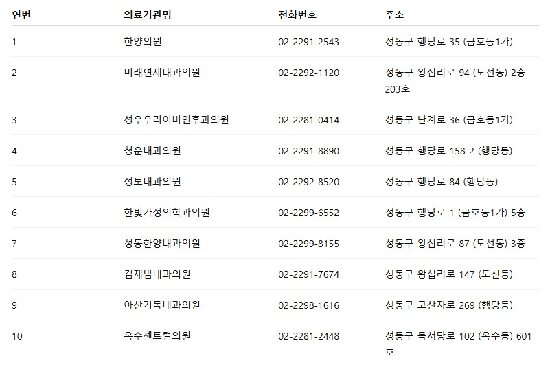성동구 위탁의료기관 안내