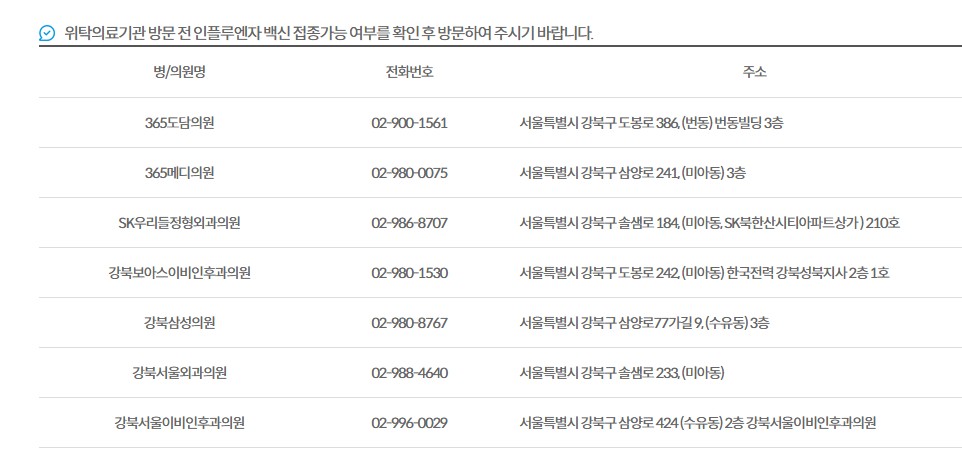 더 많은 병원은 강북구보건소 홈페이지 공지사항에서 확인할 수 있습니다.
